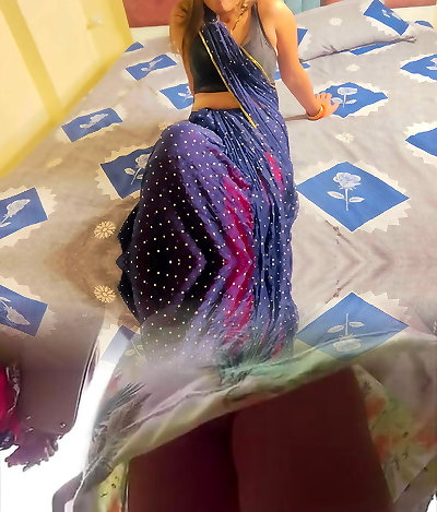 印度二人浪漫在厨房-纱丽性-纱丽徒步旅行和屁股打屁股